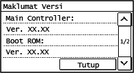 Anda boleh menyemak versi perisian tegar dari panel operasi mesin. Setelah selesai operasi kemas kini perisian tegar, pastikan maklumat itu dilakukan dengan betul. Menyemak versi Perisian Tegar