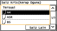 Jika saiz kertas yang dimuatkan tidak dipaparkan, pilih <Saiz Lain>.