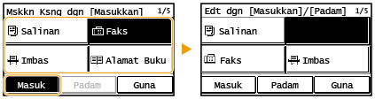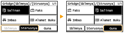 Pilih <Sblmnya> atau <Sterusnya> untuk mengalihkan butang, dan pilih <Guna>.