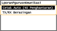 Hasil komunikasiJika ralat berlaku semasa penghantaran melalui e-mel atau menyimpan ke folder kongsi, laporan itu tidak menunjukkan kod ralat. Untuk memeriksa kod ralat, cetak Laporan Pengurusan Komunikasi Laporan Pengurusan Komunikasi (Model panel sentuhan)
