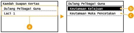 Jika <Keutamaan Muka Pencetakan> ditetapkan untuk sumber kertas yang dimuatkan dengan kertas yang anda tidak boleh gunakan untuk cetakan 2 muka (