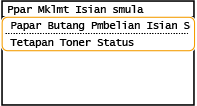 Tetapkan sama ada untuk memaparkan butang dalam Remote UI atau Toner Status untuk mengakses laman Web bagi pembelian kartrij toner, dsb. Juga, tetapkan sama ada untuk menggunakan Toner Status. Tetapan ini dipaparkan sebagai <Ppr Maklumat Isian Semula (Toner Status)> bergantung kepada model yang anda gunakan.