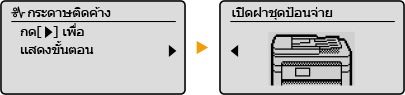 ในบางกรณี เมื่อเกิดข้อผิดพลาดขึ้น จะมีคำแนะนำเกี่ยวกับวิธีการตอบสนองต่อข้อผิดพลาดนั้น ๆ ปรากฏขึ้น ให้ปฏิบัติตามคำแนะนำบนหน้าจอเพื่อแก้ไขปัญหา หน้าจอที่ปรากฏขึ้นเมื่อกระดาษติดค้างจะแสดงเป็นตัวอย่างทางด้านล่าง