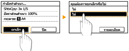 เลือก <ยกเลิก> บนหน้าจอที่ปรากฏขึ้นขณะทำสำเนา