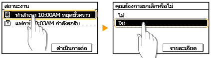ต้นฉบับได้รับการสแกนแล้ว และกำลังรอพิมพ์ ให้เลือกเอกสารสำเนาที่ต้องการยกเลิก และเลือก <ใช่>