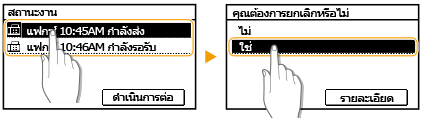 บนแผงควบคุมการทำงาน คุณยังสามารถยกเลิกการส่งแฟกซ์ได้หลังจากที่ตรวจสอบสถานะแฟกซ์