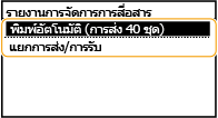 ผลการสื่อสารถ้าเกิดข้อผิดพลาดระหว่างการส่งโดยอีเมลหรือบันทึกไปยังโฟลเดอร์ที่ใช้ร่วมกัน รายงานจะไม่แสดงรหัสข้อผิดพลาด ในการตรวจสอบรหัสข้อผิดพลาด ให้พิมพ์รายงานการจัดการการสื่อสาร รายงานการจัดการการสื่อสาร (รุ่นแผงสัมผัส)