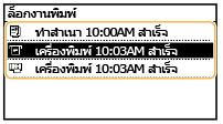 เลือก<ล็อกงานพิมพ์> และเลือกเอกสารที่คุณต้องการตรวจสอบล็อก