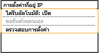 ตรวจสอบว่า <IP อัตโนมัติ> ตั้งค่าเป็น <เปิด>