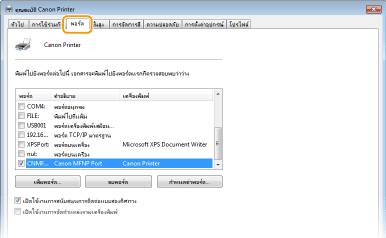 ![]() คุณสามารถเพิ่มพอร์ต MFNP ได้เฉพาะเมื่อคุณติดตั้งไดรเวอร์จาก CD-ROM/DVD-ROM ที่มาพร้อมกับเครื่อง หรือเมื่อคุณดาวน์โหลดและติดตั้งไดรเวอร์เครื่องพิมพ์หรือไดรเวอร์แฟกซ์จากเว็บไซต์ Canon