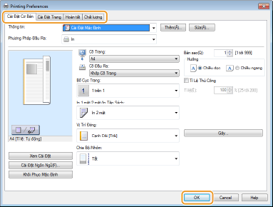 Chỉ định cài đặt in khi cần thiết, và nhấp vào [OK].