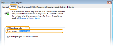 Khi bạn triển khai máy chủ in trong môi trường miền, vui lòng liên hệ với Quản Trị Viên Mạng của bạn.