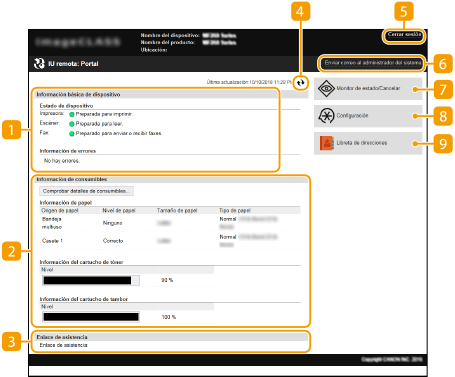 Al iniciar sesión en la IU remota aparece la siguiente página del Portal. En esta sección se describen los elementos que aparecen en la página del Portal y las operaciones básicas.