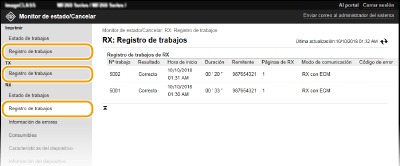 Haga clic en [Nº trabajo] en los documentos pausados para ver información detallada. Podrá consultar el nombre de usuario y el número de páginas del documento impreso.