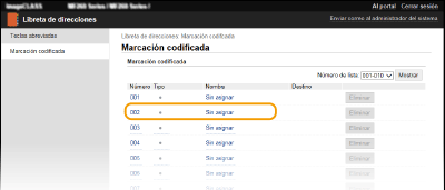 También podrá registrar destinos en los botones de marcación abreviada. En este caso, haga clic en [Teclas abreviadas] en lugar de [Marcación codificada].