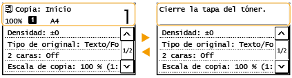 En la pantalla aparecen mensajes en determinadas situaciones como cuando se agota el papel o cuando el cartucho de tóner llega al final de su vida útil.