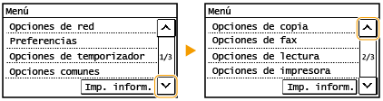 Puede cambiar diversas opciones relacionadas con la pantalla, como la velocidad de desplazamiento o el idioma: <Opciones de visualización>
