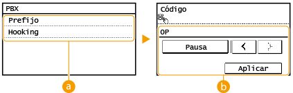Seleccione el tipo de PBX que esté utilizando. Si selecciona <Prefijo>, registre el código del prefijo en la siguiente pantalla.