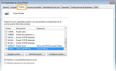 ![]() Solo puede añadir un puerto MFNP si ha instalado el controlador desde el CD-ROM/DVD-ROM suministrado, o si se ha descargado e instalado el controlador de impresora o el controlador de fax desde el sitio web de Canon.