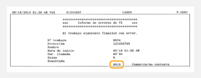 Si la impresión no se realiza correctamente o no puede enviar o recibir un fax o un documento escaneado, o si se produce otro error, dicho error aparecerá en un informe o en un mensaje en la pantalla <Monitor de estado> como un número de tres dígitos (código de error). Consulte la siguiente información para averiguar las causas y las soluciones de cada código de error. Para obtener información sobre cómo imprimir un informe de errores e información en el informe, consulte