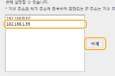IP 주소를 선택하고 [삭제]를 클릭합니다.