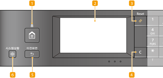 설정 메뉴와 복사 및 스캔과 같은 기능에 액세스할 수 있는 홈 화면을 표시하려면 누릅니다.