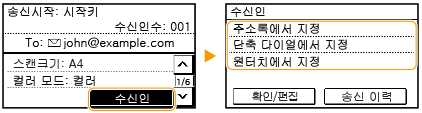 이 기능을 사용하기 전에 주소록에 수신인을 등록해야 합니다. 수신인 등록