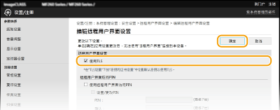 1 | 单击 [安全设置] [远程用户界面设置]。 |