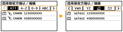 可以更改设置,例如更改已注册的传真号或名称、将注册为传真号码的接收方类型更改为电子邮件接收方、更改编码拨号号码以及添加或删除群组接收方。也可删除接收方或群组。