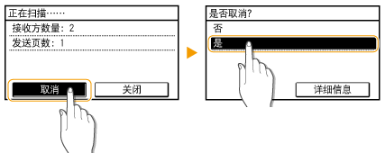 后立即取消发送传真,选择显示屏上的 <取消> 或按下操作面板上的