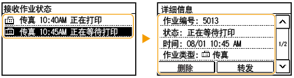 可以查看存储器中保存的每个文档的概要,包括发件人传真号码和发送的页数。也可以选择和转发存储器中保存的文档,并删除不需要的文档(如有)。