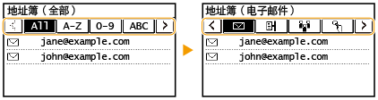 | | 使用地址簿,可以通过从注册的接收方列表中选择来指定接收方,或可以通过含接收人姓名的接收方名称进行搜索来指定接收方。 |