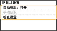 手动输入 IP 地址1 | 配置设置以禁用自动获取。 选择 <自动获取>,然后将 <选择通信协议> 和 <自动获取IP> 设置为 <关闭>。 |