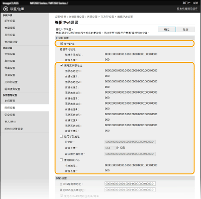 选择 [使用IPv6] 复选框,并配置所需设置。