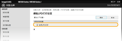 配置 LPD 或 RAW1 | 单击 [LPD打印设置] 或 [RAW打印设置] 中的 [编辑]。 |