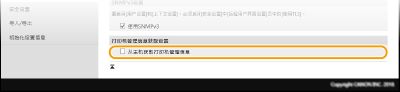 选择此复选框可启用通过 SNMP 监视本机的打印机管理信息。若要禁止监视打印机管理信息,请取消选中此复选框。