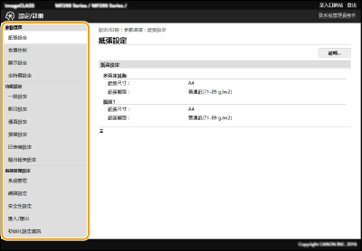 可以透過遠端使用者介面變更各種本機設定。也可以在本機指定大部份的設定,但是有些設定只能透過遠端使用者介面設定。本節介紹使用遠端使用者介面變更本機設定的基本流程。