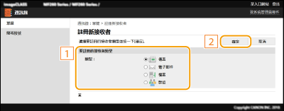 選擇 [要註冊的接收者類型],然後按一下 [確定]。
