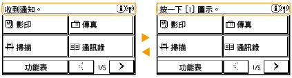 顯示 <收到通知。> 或 <按一下[i]圖示。> 時