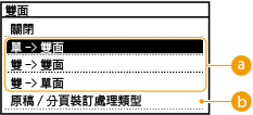 <雙面> 在使用 <紙張節約>、<ID卡影印> 或 <護照影印> 時無效。