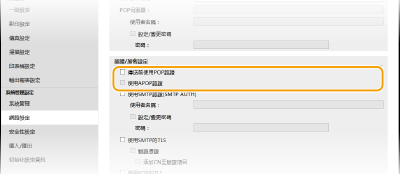 如果您指定了 SMTP 認證 (SMTP AUTH),會在傳送電子郵件時透過使用者名稱和密碼執行使用者認證。