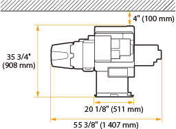 Espace requis pour l'installation (L x P) | Unité principale uniquement ![]() Avec Module de Finition agrafage-Z ![]() |