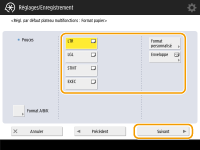 2 | Sélectionnez le format du papier. ![]() ![]() Pour plus d'informations sur les formats de papier affichés lorsque vous appuyez sur <Autre format>, consultez la section Papier disponible. |