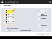 Si le type de papier chargé ne s'affiche pas, appuyez sur <Réglages détaillés> pour le sélectionner dans la liste.