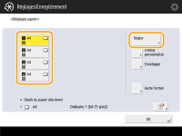 Sélectionnez la source de papier dans laquelle le papier est chargé et appuyez sur <Régler>.