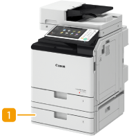 Possibilita adicionar uma gaveta de papel. Possibilita carregar papel de um tamanho diferente que o especificado para a gaveta de papel 1 e, além disso, oferece um espaço para armazenamento.
