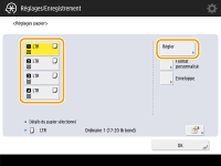 Si le type de papier chargé ne s'affiche pas, appuyez sur <Réglages détaillés> pour le sélectionner dans la liste.