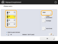 Sélectionnez la source de papier dans laquelle le papier est chargé et appuyez sur <Régler>.