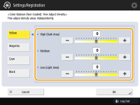 Selecione a cor a ser ajustada e ajuste a densidade.