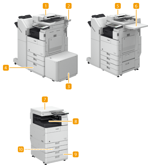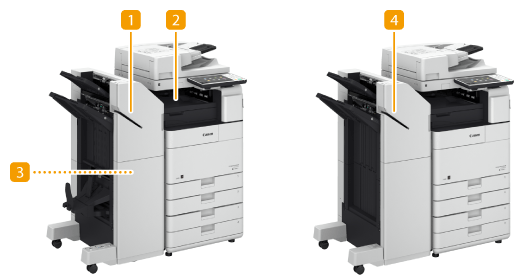 Para informações sobre a combinação de opções que podem ser instaladas na máquina, entre em contato com seu revendedor autorizado Canon local. Algumas das configurações podem não ser exibidas, dependendo da configuração do equipamento opcional instalado na máquina. |